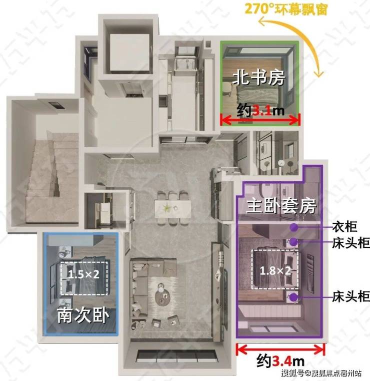 主卧与北侧书房均配置双转角环幕飘窗,270°观景视野让晨起的第一缕阳光、夜晚的城市灯火都能更好的纳入室内;主卧尺度更是大幅进阶——开间从约3.4米拓宽至约3.8米,套房面积也从115㎡户型的约20㎡扩容至约24㎡,私密感与舒适度双双拉满.上海保利外滩曜售楼处电话☎:【已认证】