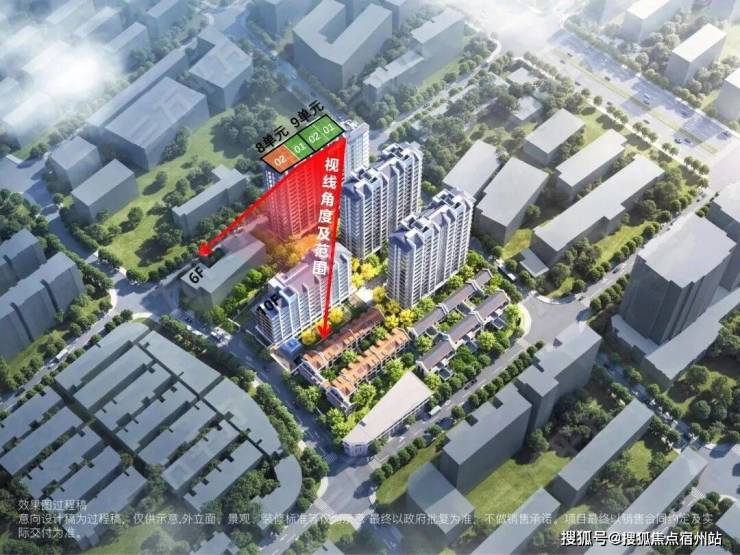 由于项目地块周边为风貌区,9幢西南侧的楼栋也较为低矮,无高层建筑遮挡,115㎡户型即使位于楼栋中户,视野也能巧妙穿透楼栋间隙——从中区(9F)到高区(17F),均可远眺陆家嘴三件套(上海中心、环球金融中心、金茂大厦),城市天际线完整呈现.对此,我们分别对115㎡户型的三个位置,做了相应的视线模拟.