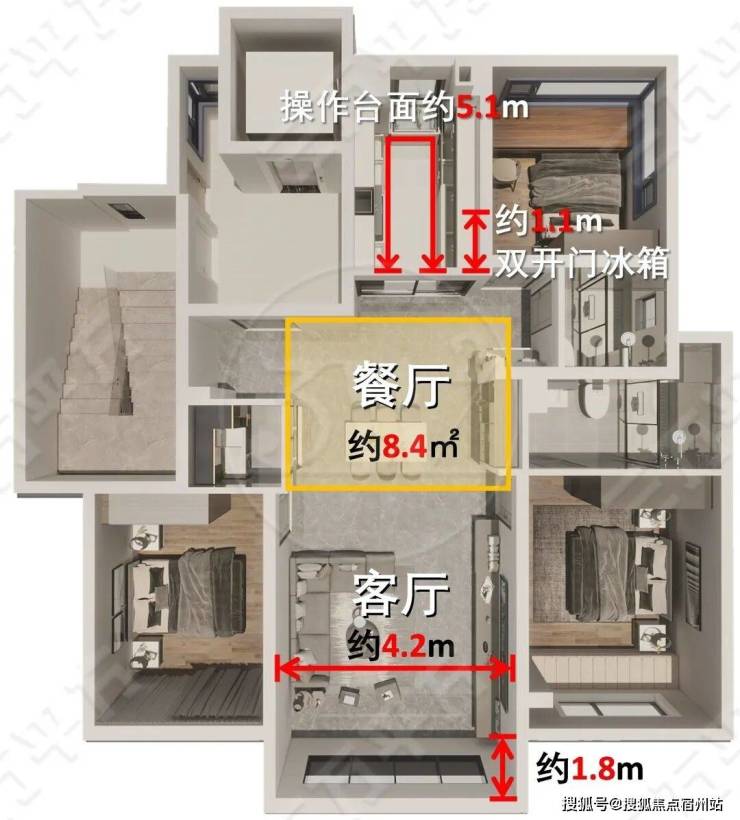 客餐厅开间约4.2米,摆放L型沙发与大尺寸电视后仍保持宽敞;相较于市面上同面积段别的产品约1.6米的阳台进深,保利外滩曜阳台进深约1.8米,除基础晾晒外,还可改造为阳光庭院(配置绿植与休闲桌椅)或家庭茶室,延伸客厅的使用功能.