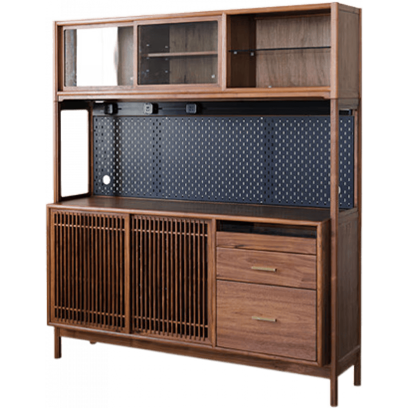 喜来餐边柜酒柜一体设计,完美结合了餐边柜和酒柜的功能,满足超大的储物需求。北美黑胡桃木的使用,使得柜体结实耐用,并且具有非常出色的视觉效果。三区内置活动层板的设计,让你可以灵活调整存放空间,很适合现代家庭的需求。