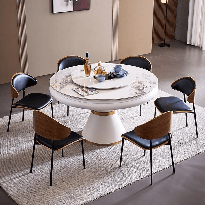 3、美观又实用:圆桌的底座是金字塔式的,美观又耐用,闲置时就是家里的一道风景线平米的接地面积,稳固又安全。550mm的桌底空间,让你各种坐姿都能轻松自如,用餐更惬意。还有,餐椅可以收入桌底,让餐厅空间更宽敞。这样的餐桌,谁会不喜欢呢?